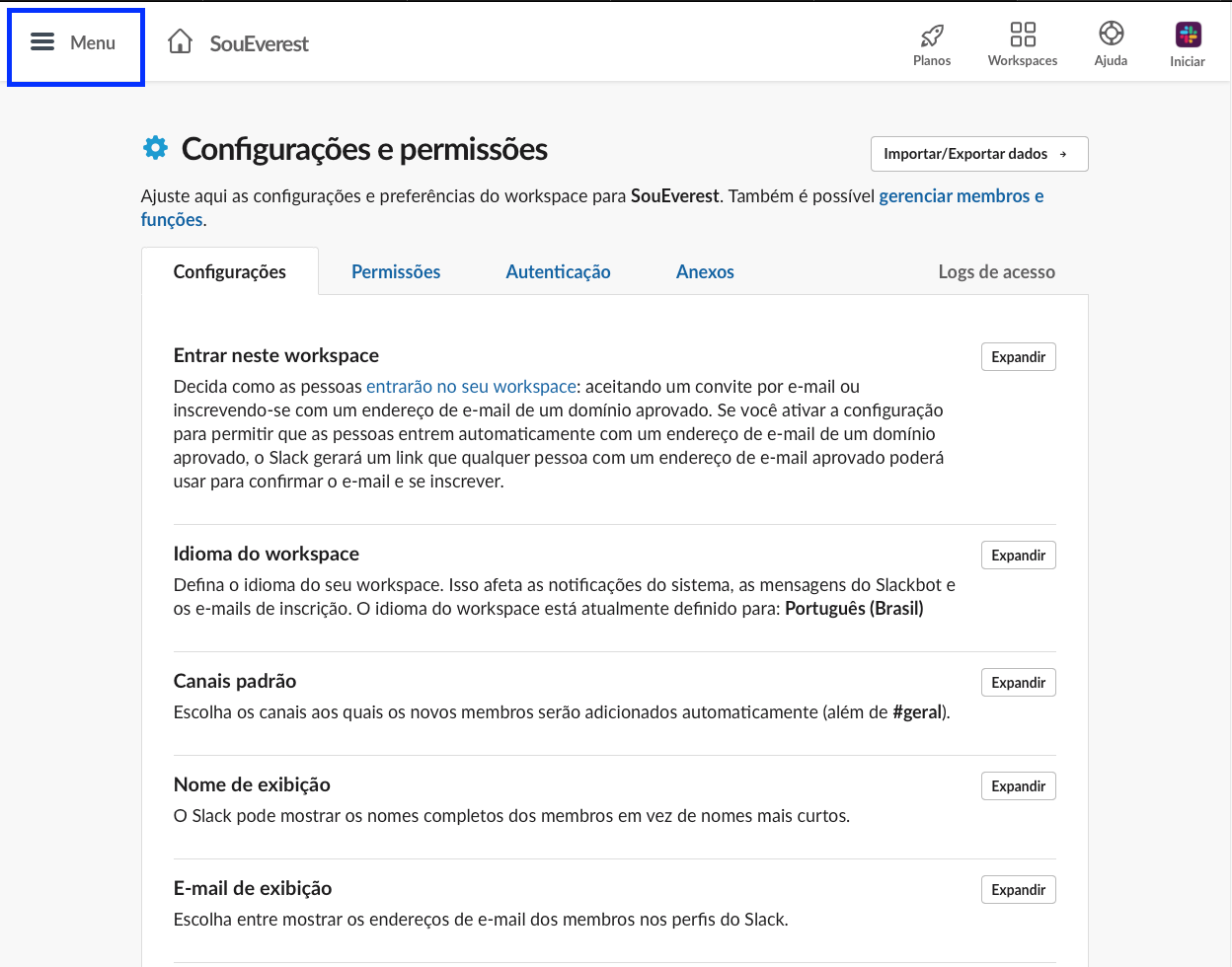 Acessar Administrativa do seu Workspace