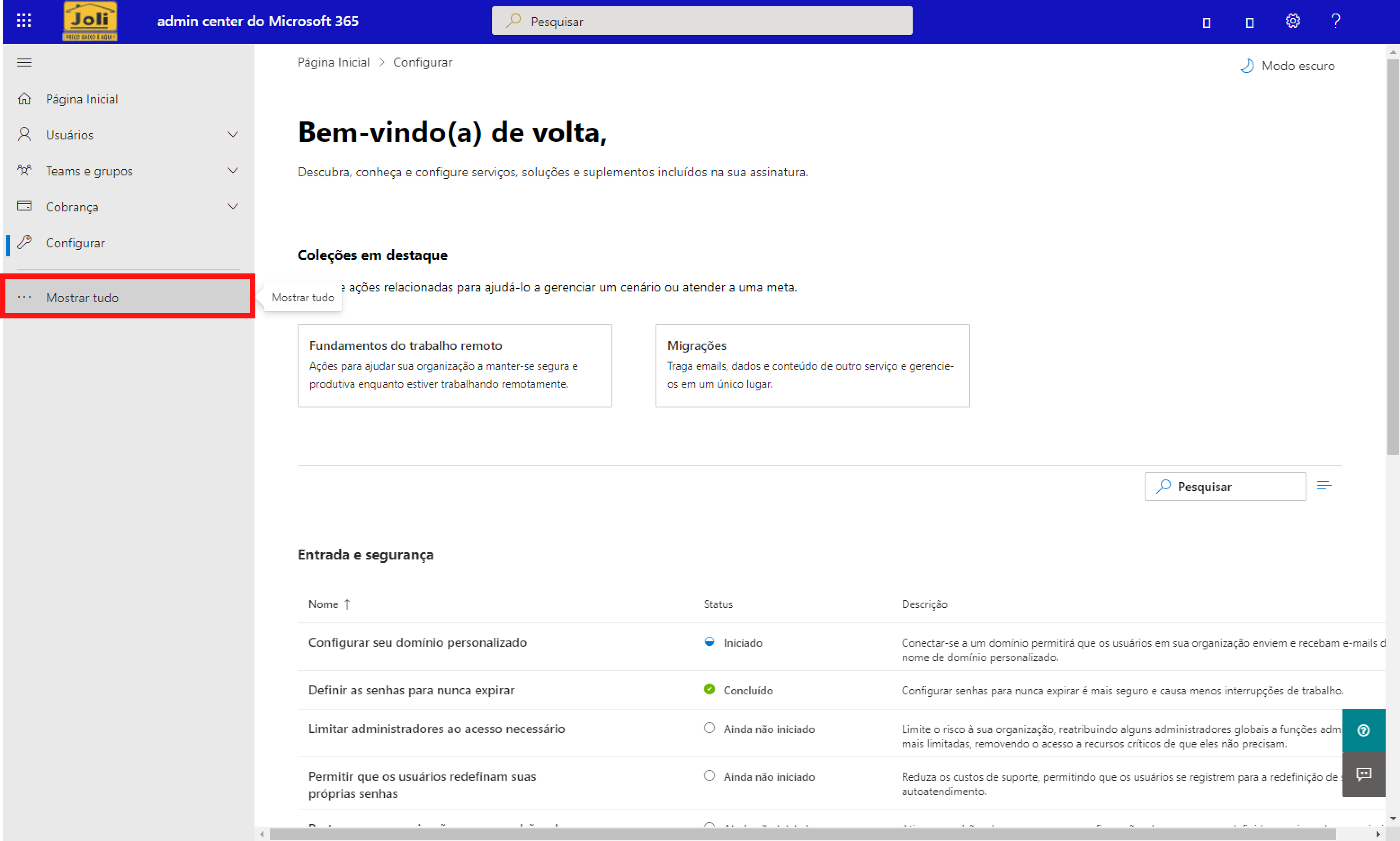 A1. Entre na área de Administrativa do seu Microsoft 365