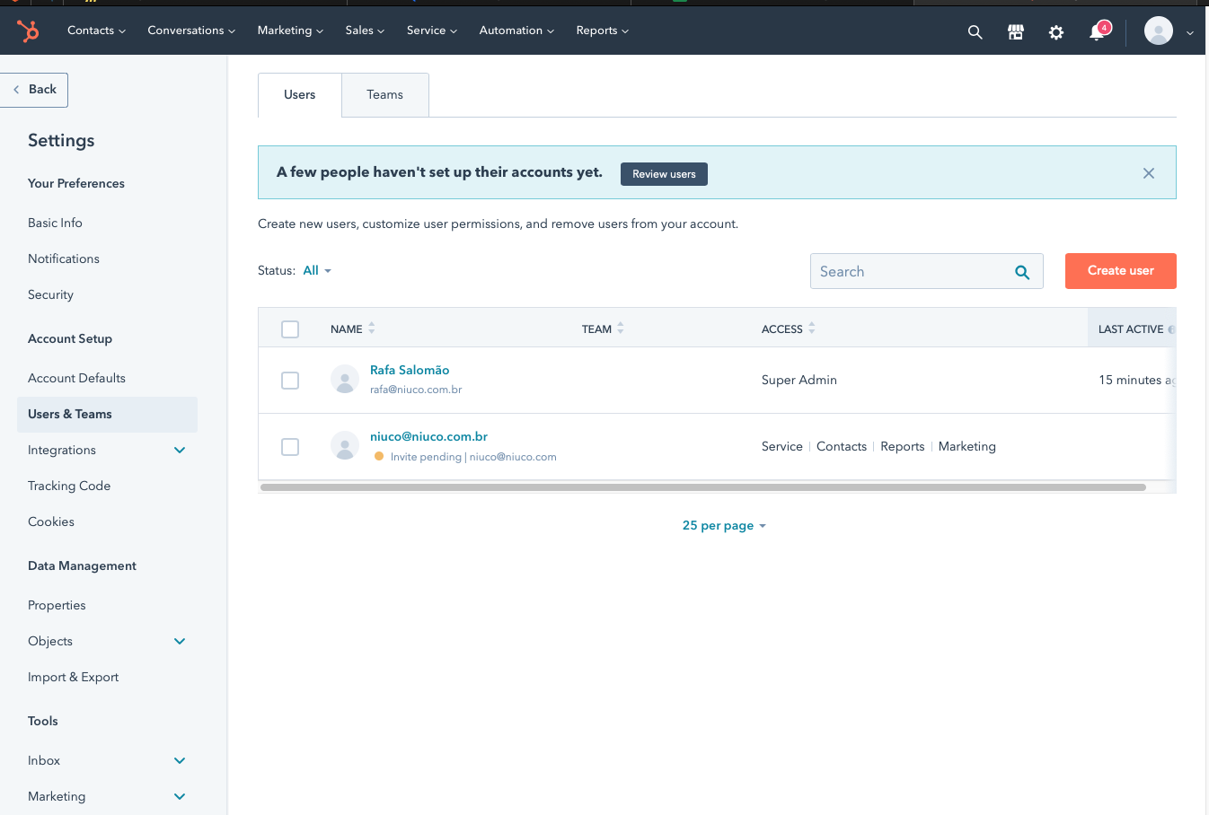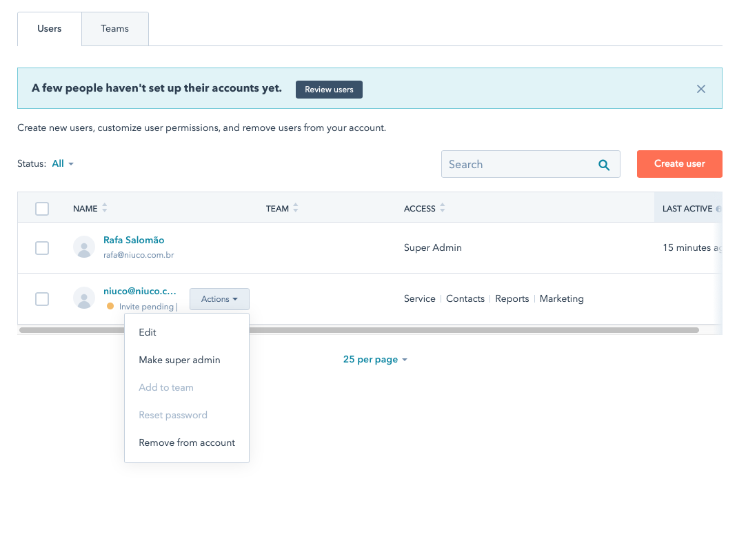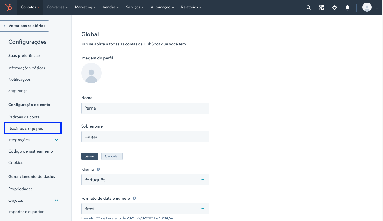 IMPORTANTE: caso tenha alguma licença disponível, recomendamos que seja criado um usuário só para nossa conta, para não ter risco desse usuário ser deletado. Caso ele seja deletado, não vamos mais conseguir atualizar o nosso sistema. Ou se não tiver nenhuma licença disponível, recomendamos que conecte ao Hubspot com um usuário que nunca será deletado.