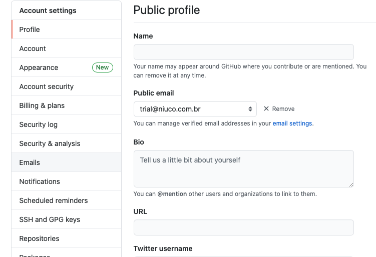 2. NO ITEM "PUBLIC EMAIL", SELECIONE UM EMAIL PARA APARECER