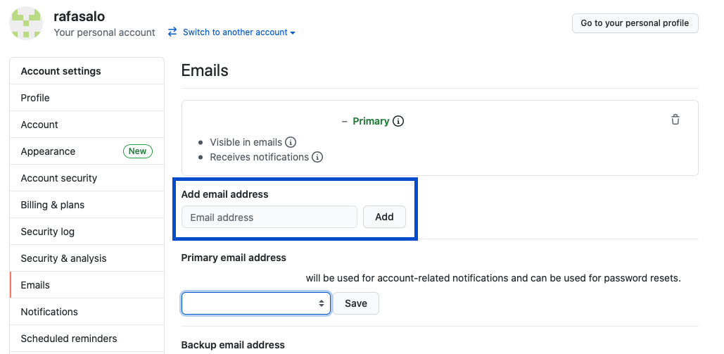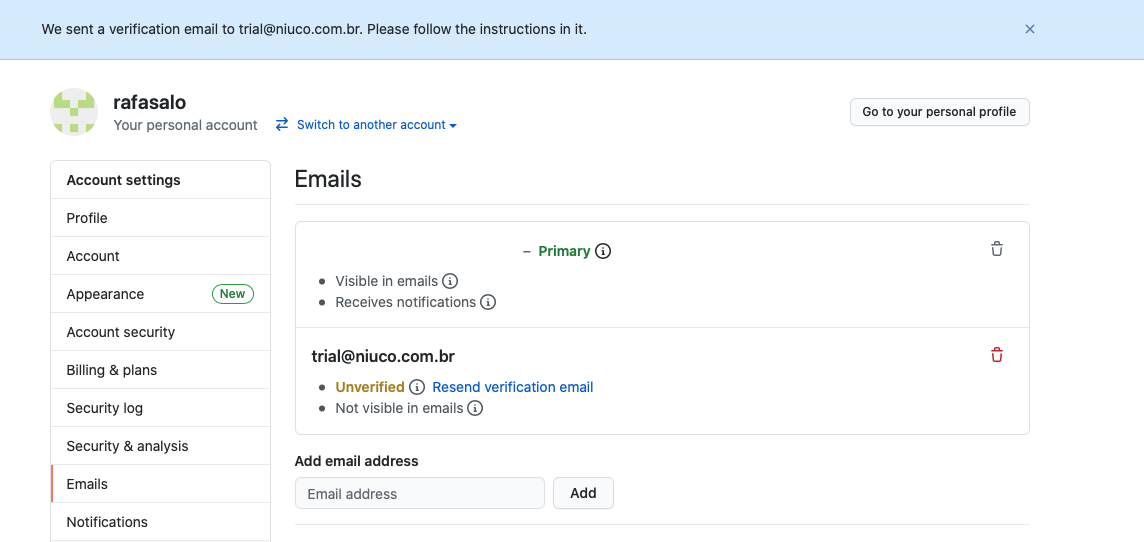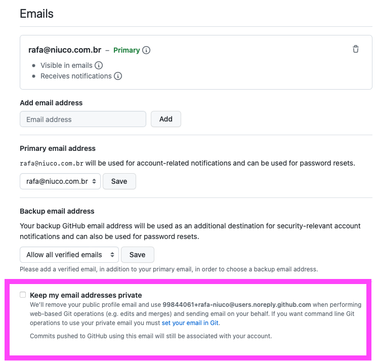 Para poder visualizar todos os emails dos usuários do Github, precisamos que cada membro do seu time permita que nós visualizemos o e-mail dele.