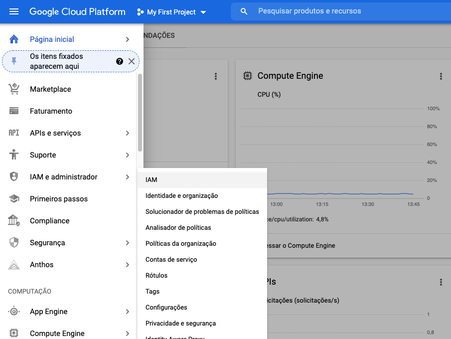 B. NO MENU, CLIQUE EM IAM E ADMINISTRADOR > IAM
