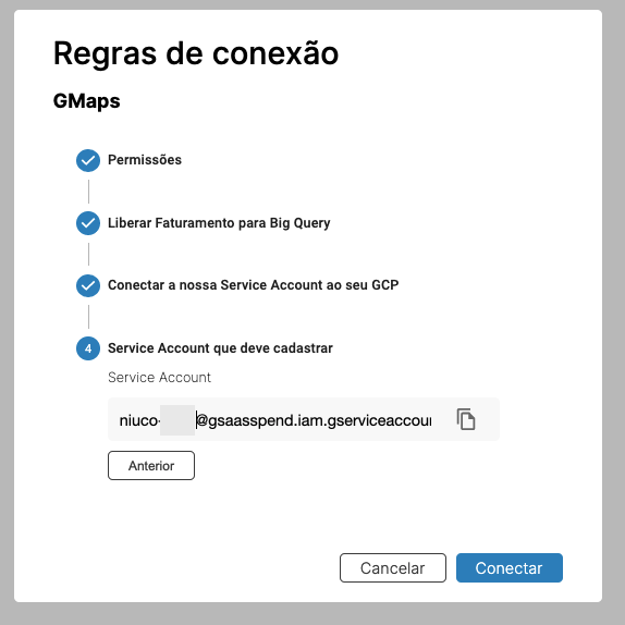 Para poder usar nossa funcionalidade de gestão de gastos do GCP, você primeiro precisa conectar sua conta faturamento ao nosso sistema, a partir de uma conta de Administrador.