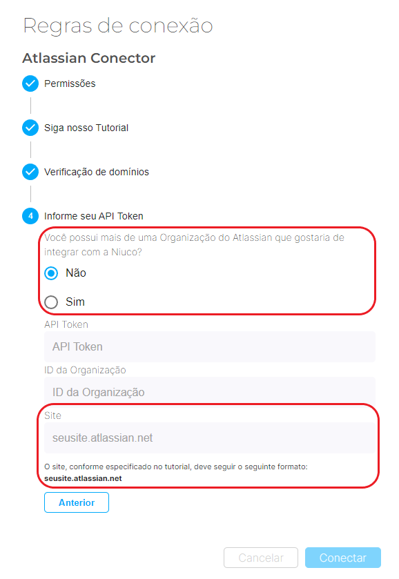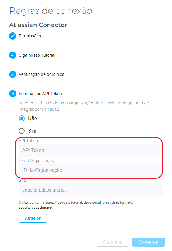 Lembre-se, o endereço deve seguir o seguinte formato: seusite.atlassian.net