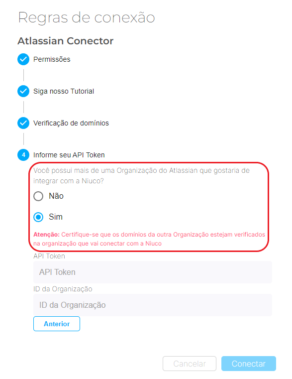 Caso você tenha mais de uma organização, precisamos que você marque a opção como "Sim" e sua conexão está pronta para ser realizada!