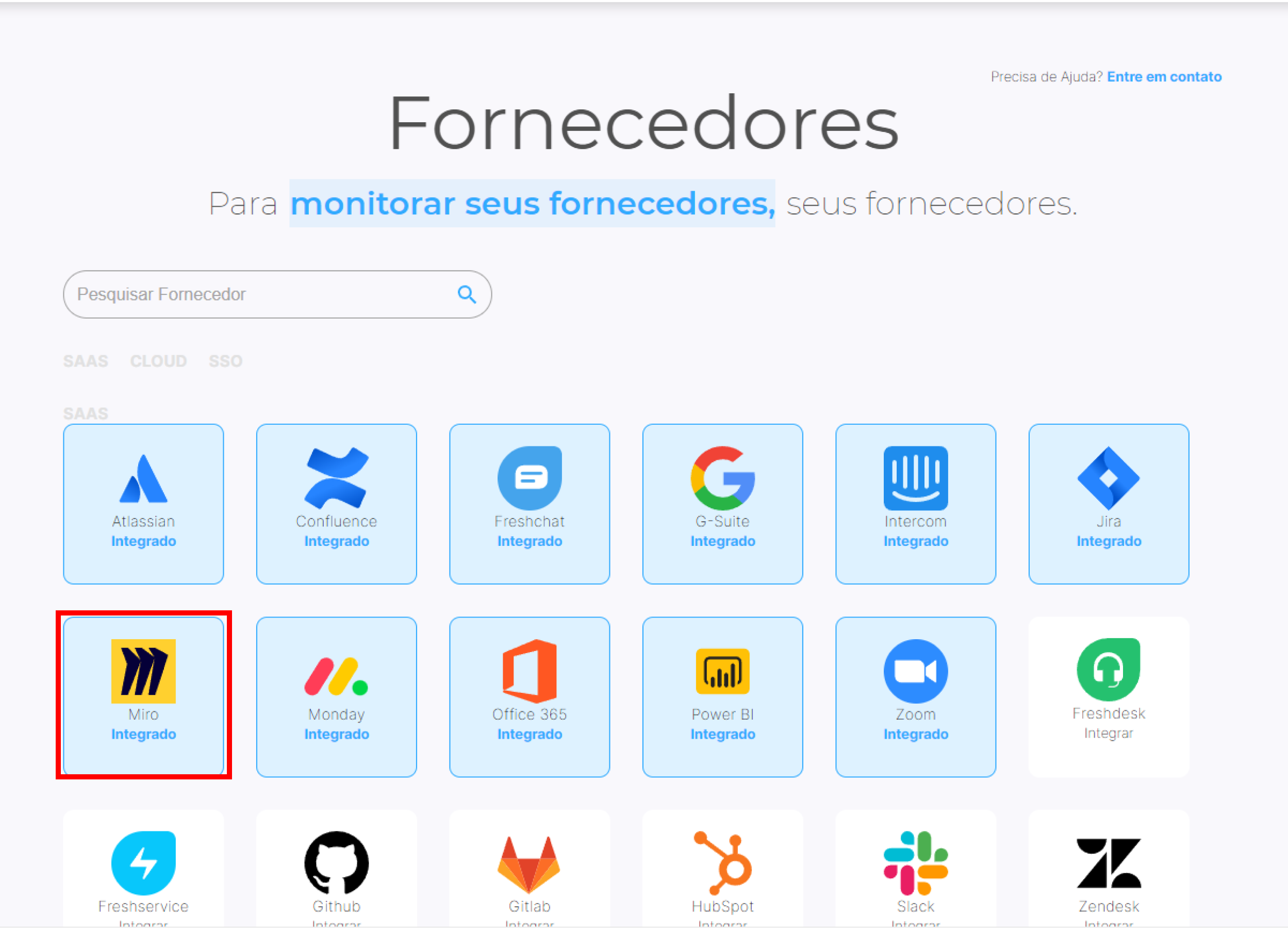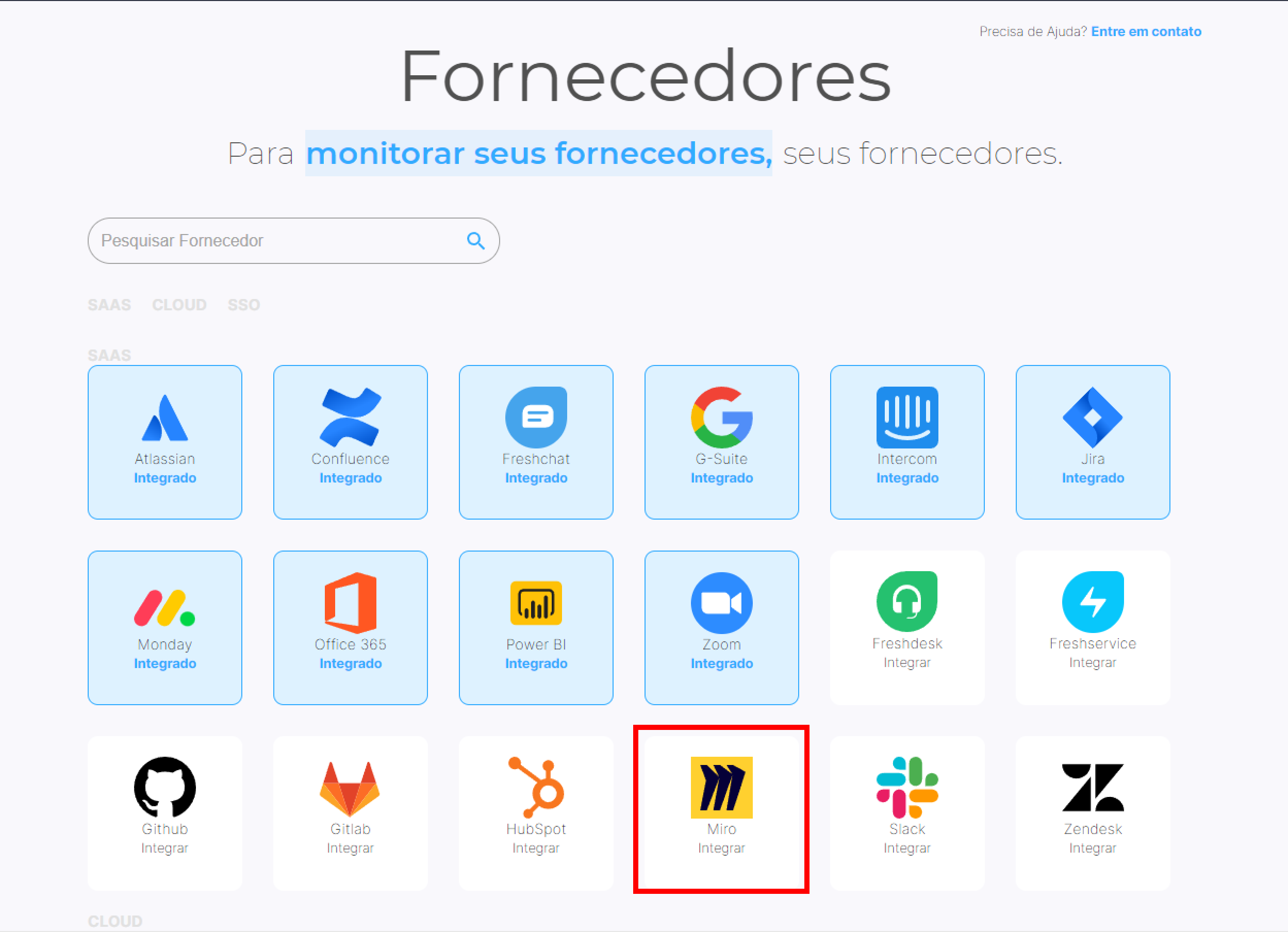 Clique na integração do Miro.