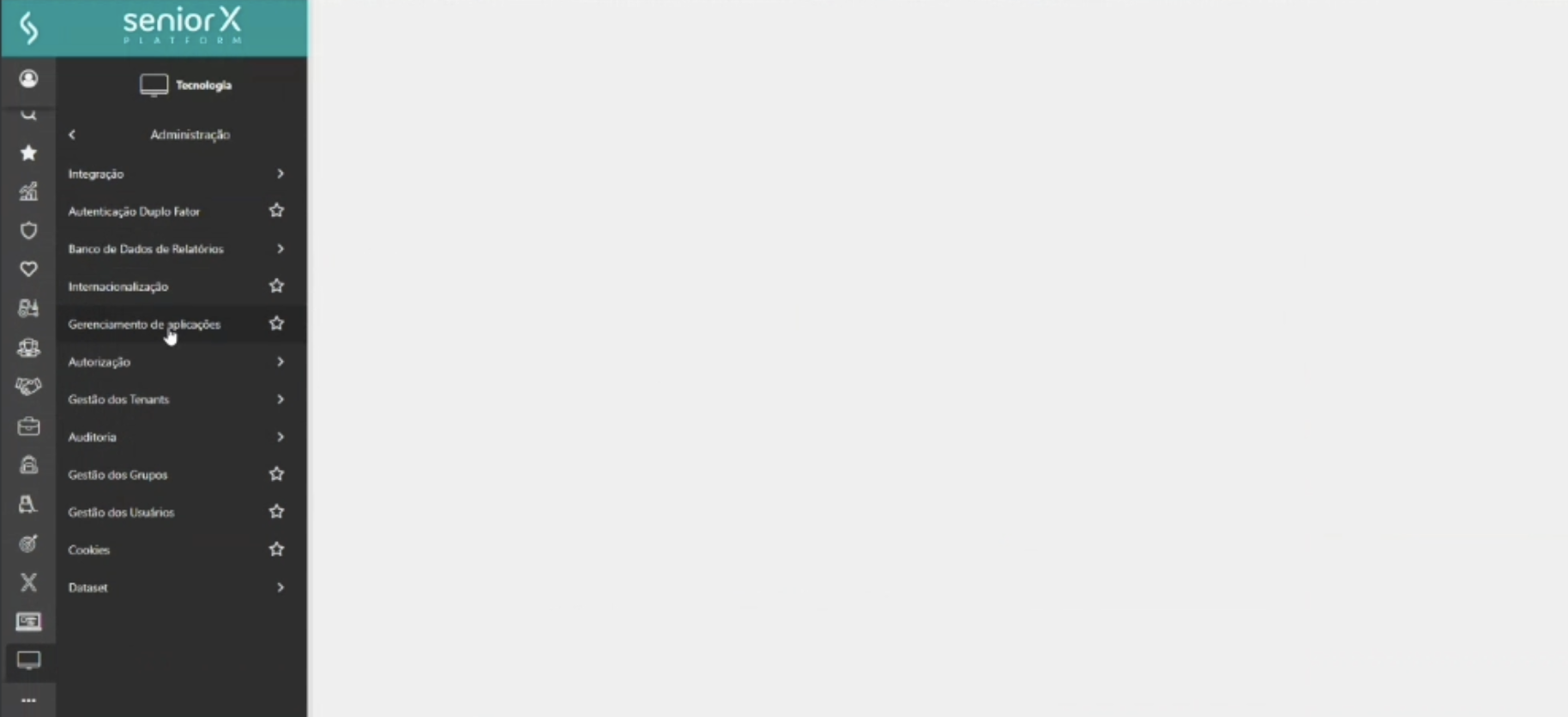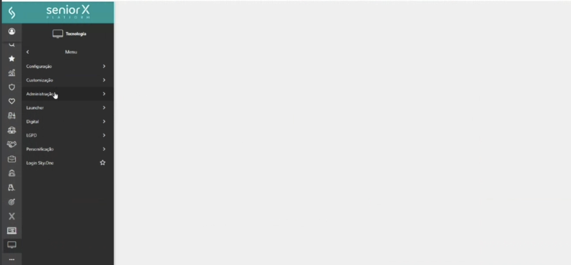 No Menu Lateral, clique em TECNOLOGIA