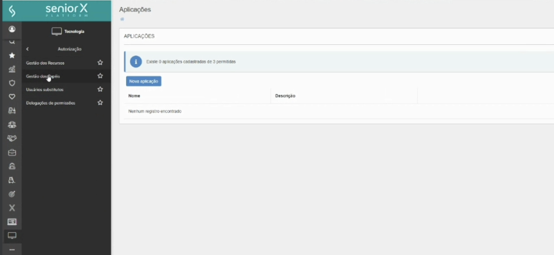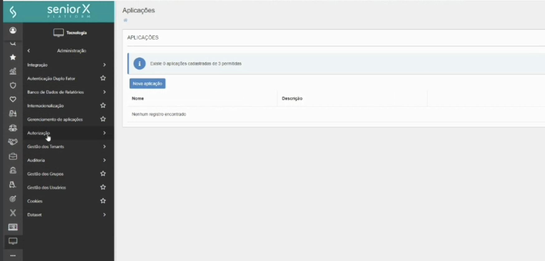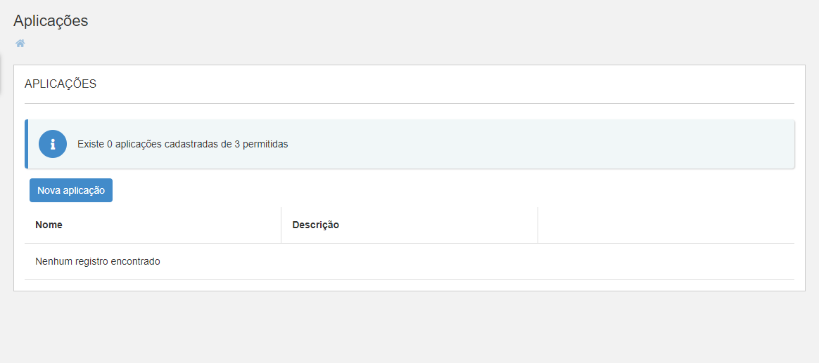 Clique no botão "Nova Aplicação"