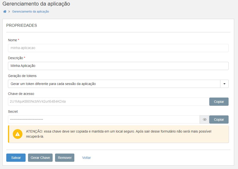 Após gerar a Chave de Acesso e o Secret salve eles em um bloco de notas e clique em SALVAR.