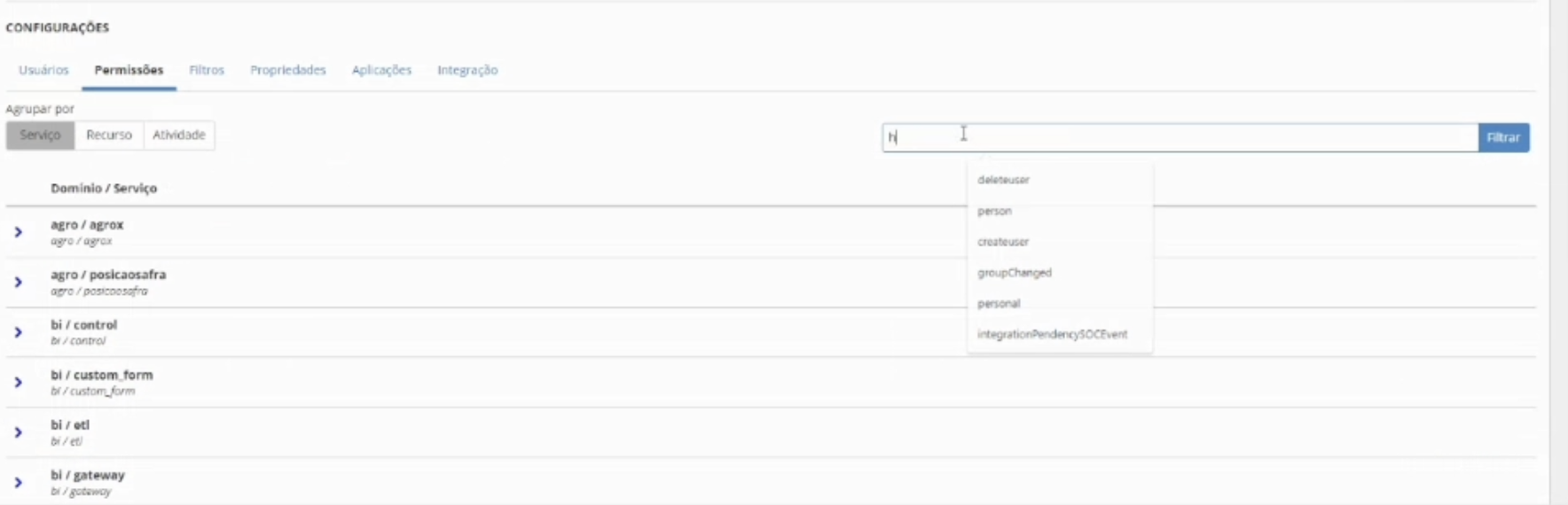 Em configurações, clique na aba PERMISSÕES