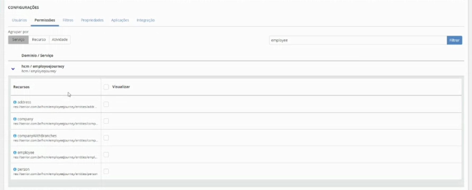 No filtro lateral, digite "employeejourney"