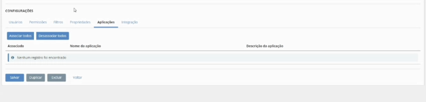 Clique na aba APLICAÇÕES, e associe o app criado por você anteriormente "niuco-app"