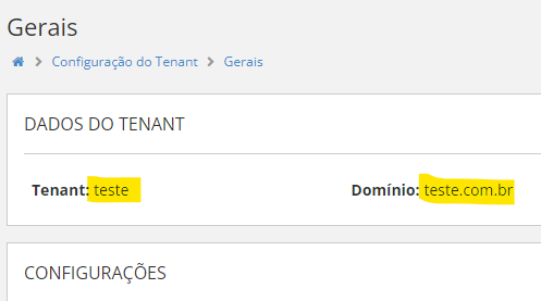 Após isso, poderá ver os DADOS DO TENANT.