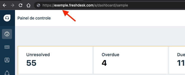 O nome da organização pode ser identificado na URL do seu Freshdesk.