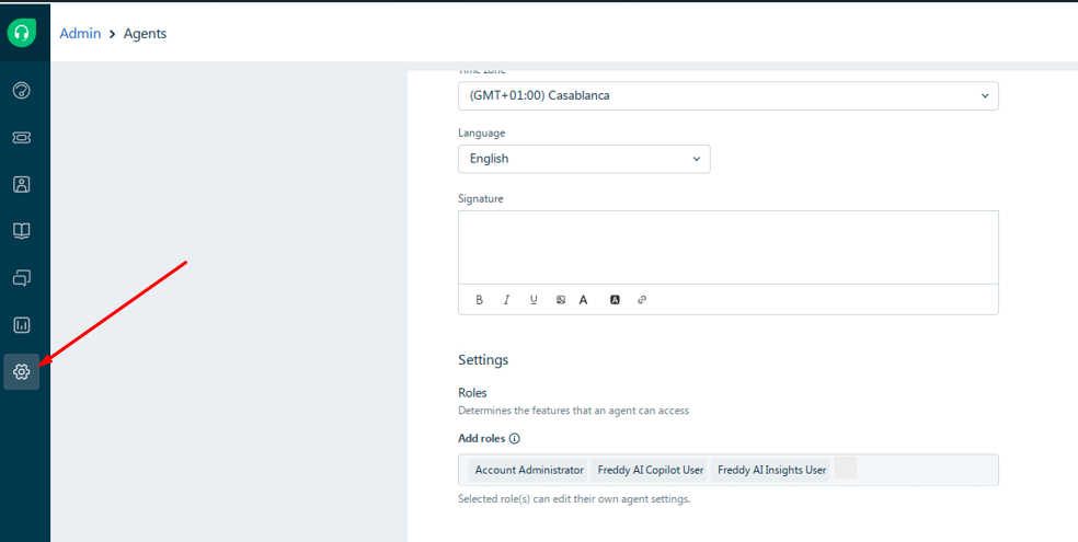 Se precisar verificar seu nível de permissão ou adicionar um administrador para a Niuco, consulte nosso tutorial sobre como liberar um usuário admin no Freshdesk ou se na barra lateral esquerda do Freshdesk não houver um ícone de engrenagem ⚙ (Configurações/Administração), significa que sua conta não tem permissão de administrador.