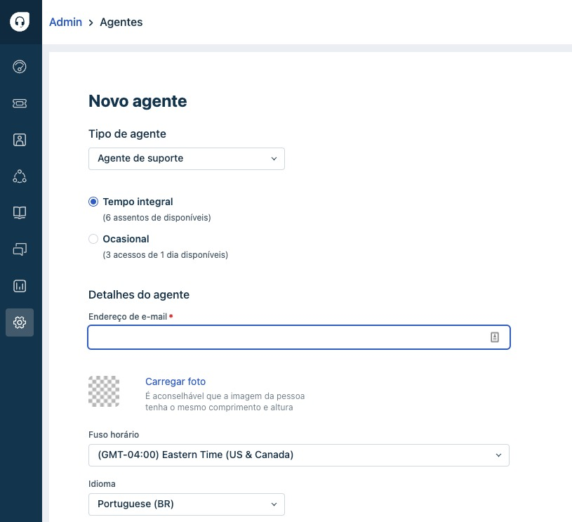 - Você pode adicionar uma foto de perfil para seu agente ou pode ser adicionada posteriormente pelo agente após o login