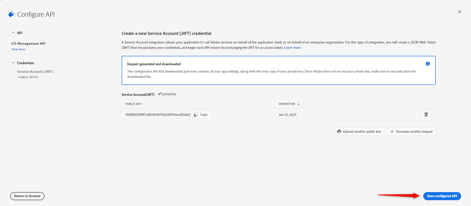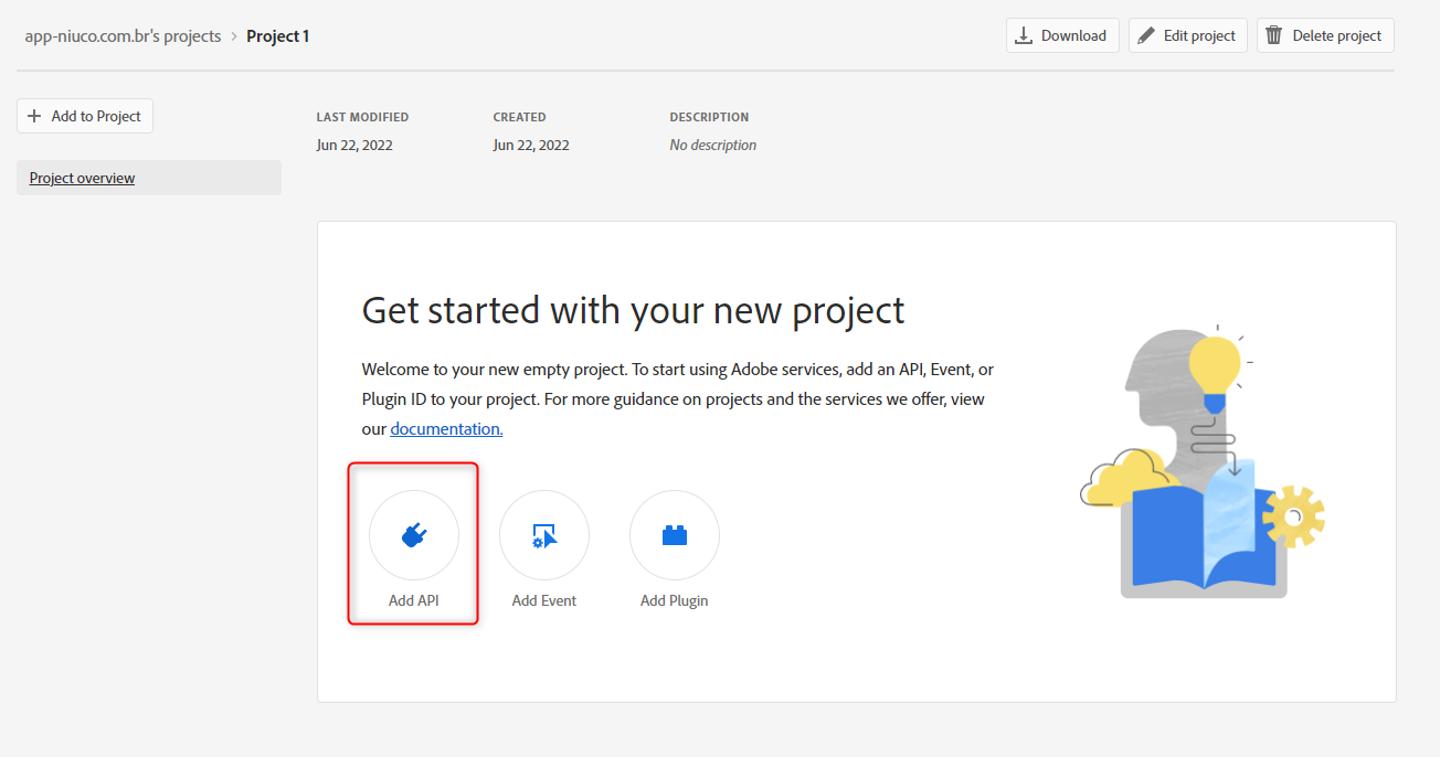 OBS: Caso a User Management API não esteja na lista ou não esteja habilitada, pode ser que sua conta não seja do tipo Enterprise, nesse caso será necessário entrar em contato com seu representante de vendas da Adobe.