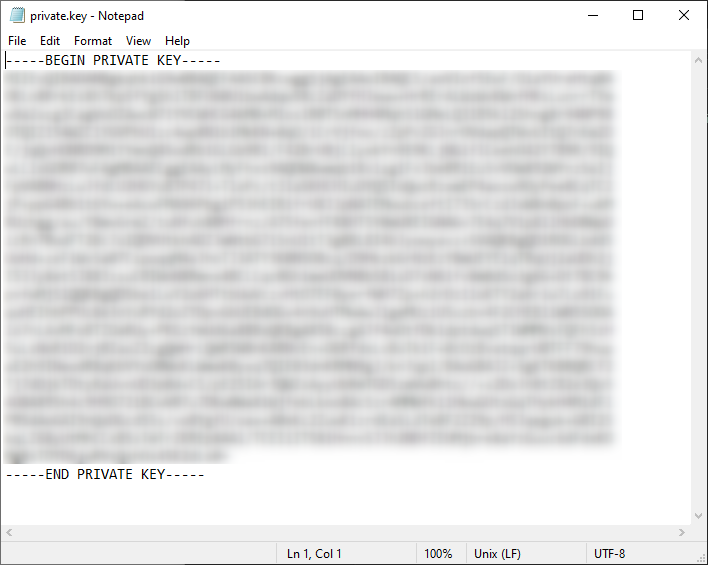 9. Agora abra o arquivo private.key com qualquer editor de texto e copie seu conteúdo por completo incluindo a primeira e última linha (-----BEGIN PRIVATE KEY----- e