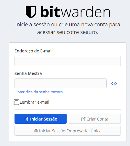 1. Faça login no Bitwarden: https://vault.bitwarden.com/#/login