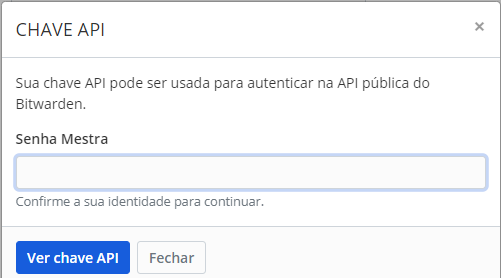 3. Informe sua senha do Bitwarden(a do Login) e clique em Ver chave API