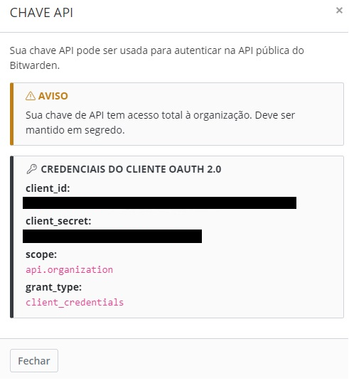 Pronto, basta agora você acessar nossa ferramenta e ao cadastrar o Bitwarden, usar essas credenciais para nos dar autorização :D.