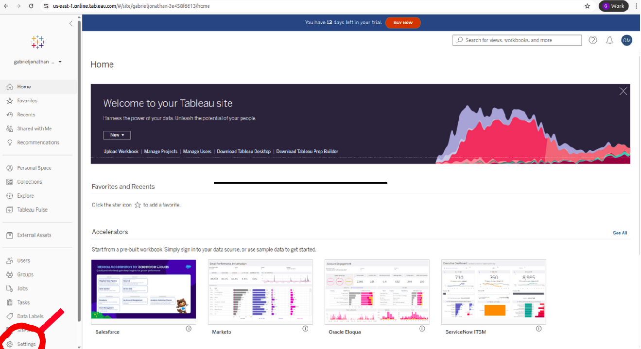 1. Faça login na plataforma Tableau