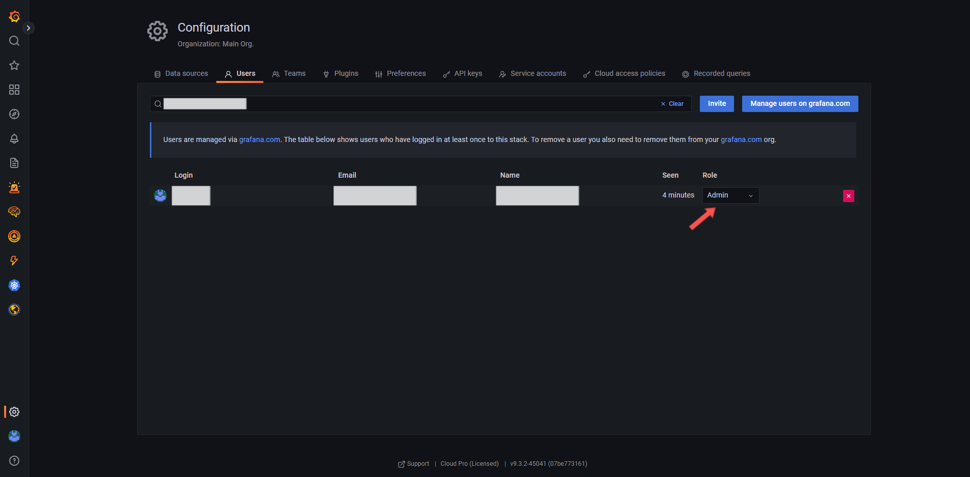 2. Busque seu usuário pelo email na barra de busca e verifique de acordo com a imagem abaixo se a Role é Admin