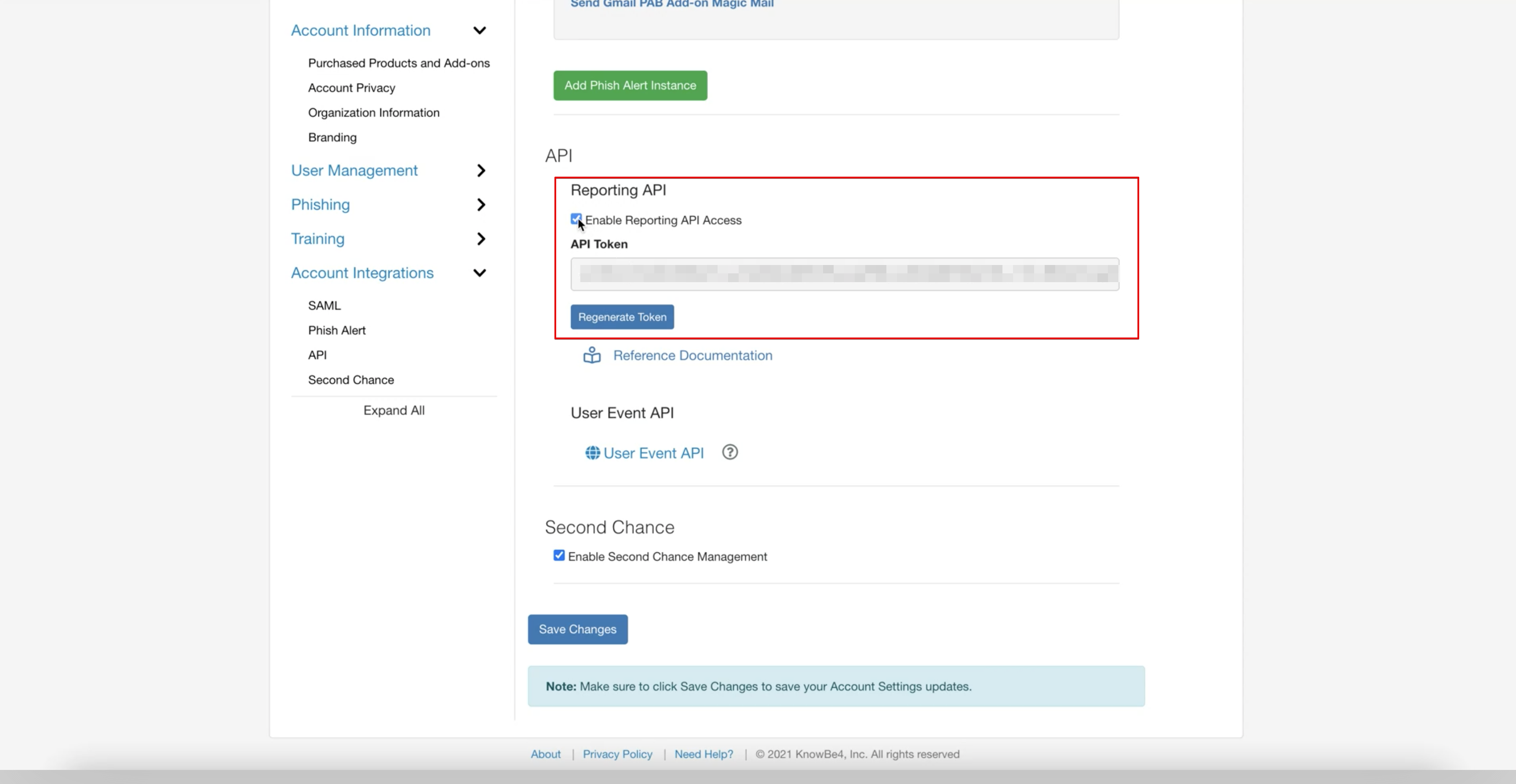 3. Marque a opção "Enable Reporting API Access" para habilitar acesso pela API