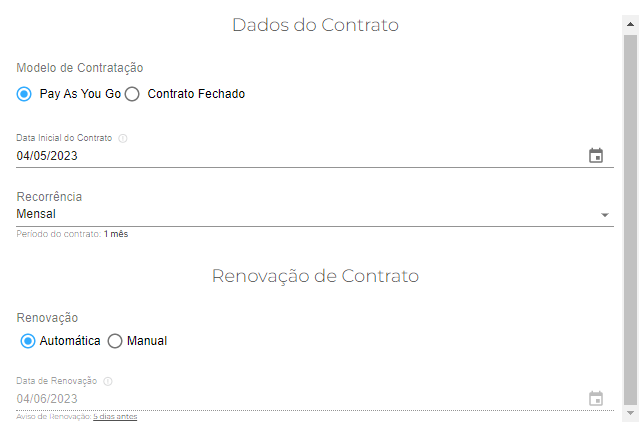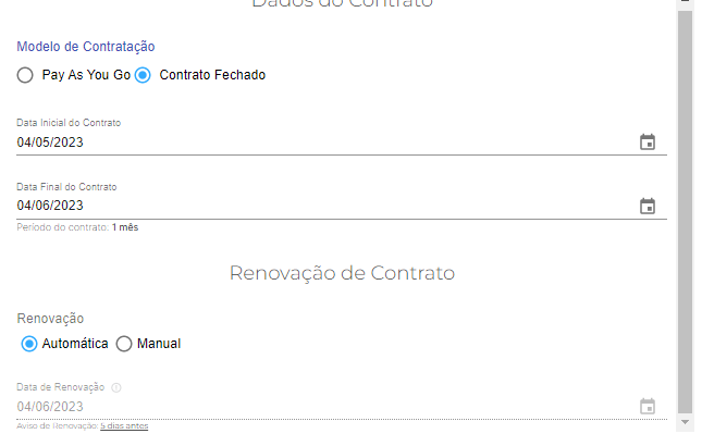 Se a renovação é manual ou automática.