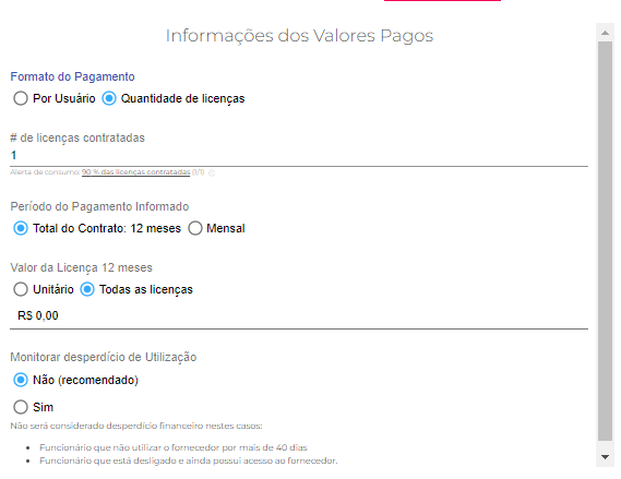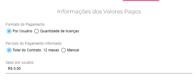 Temos também a opção do valor unitário pago por cada licença.