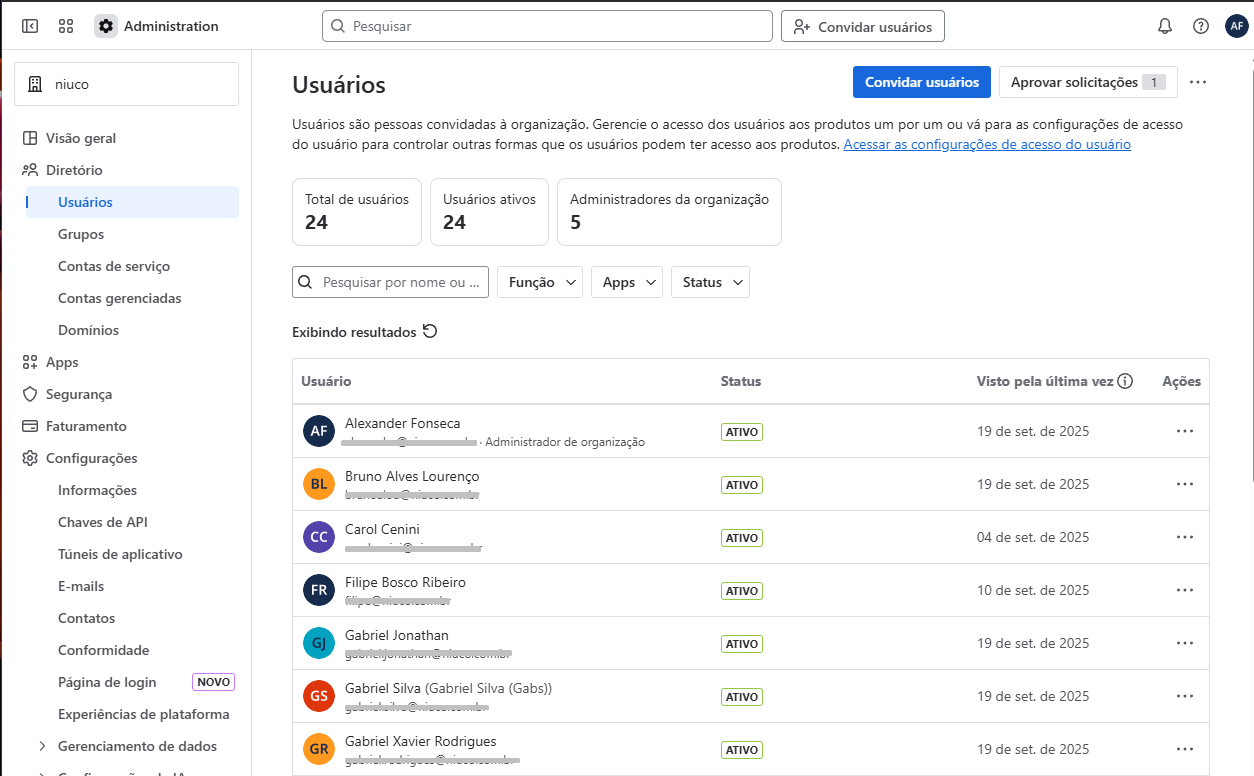Após verificar o domínio com a Atlassian, todos os usuários que utilizam esse domínio em qualquer produto Atlassian serão adicionados à sua área de diretórios.