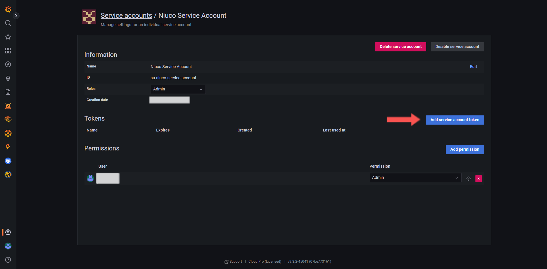 - Se a versão do Grafana for 9 ou maior, você deve seguir o passo B1 - Criando um Service Account Token.