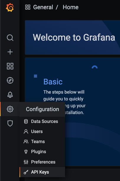 No menu principal, vá em Configuration > API Keys: