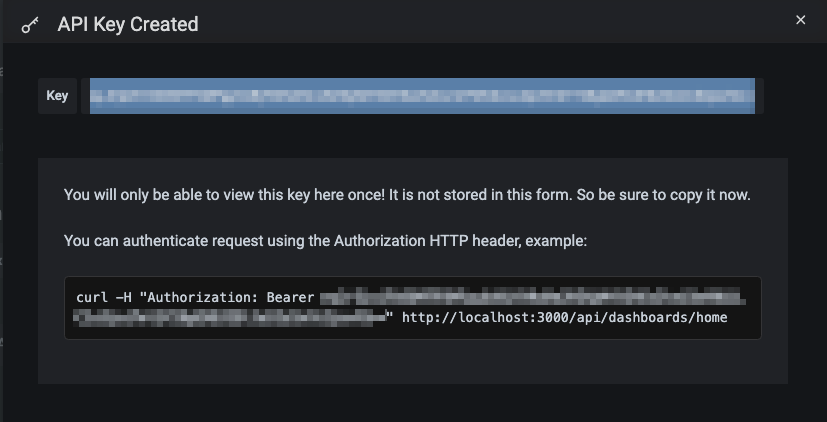 Por último, com o Token em mãos e as informações sobre o tipo de serviço, envie-os para o nosso sistema para finalizar sua integração com o Grafana. =D