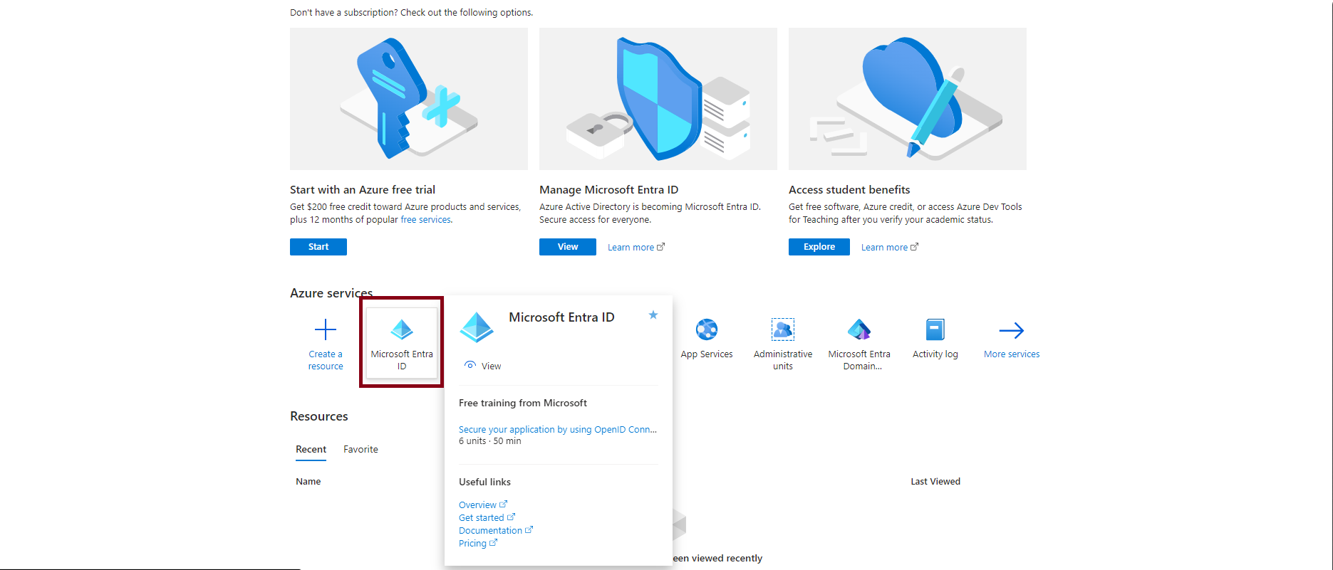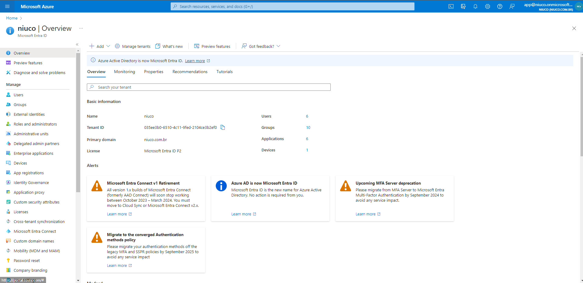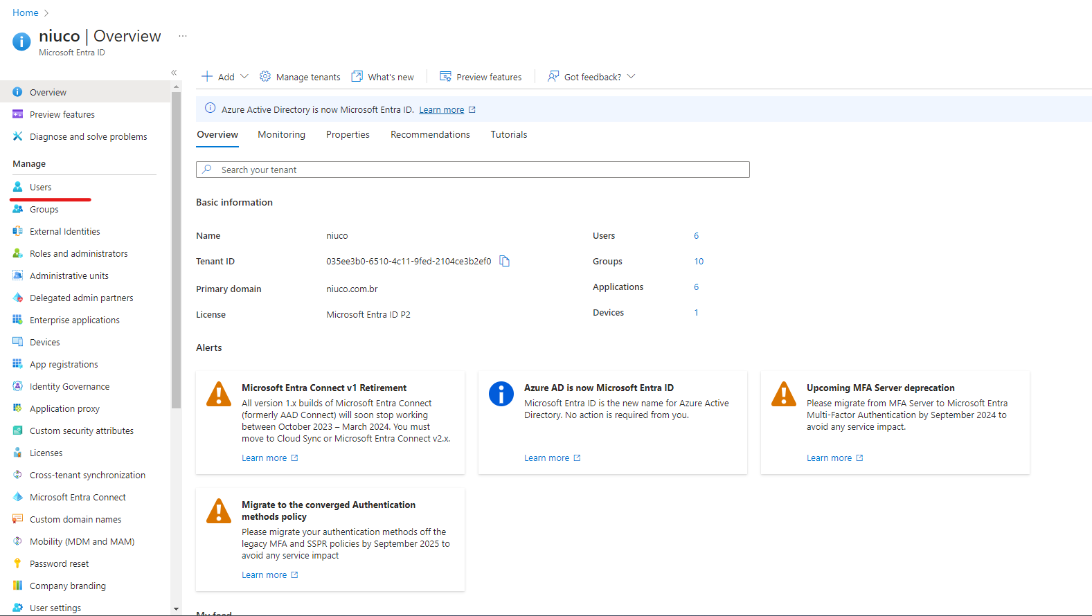Ao acessar o console do Microsoft Entra ID, você deve visualizar a seguinte tela: