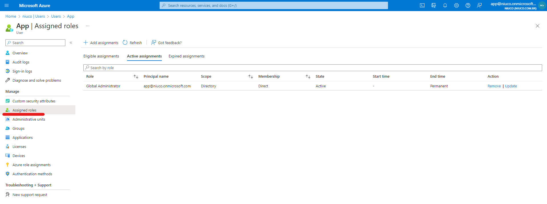 Atenção: Caso seu usuário não possua nenhum dos perfis necessários, solicite ao responsável pelo Microsoft Entra ID para que atribua um dos perfis , ou ele terá que criar outro usuário com o perfil necessário seguindo o item C do tutorial (abaixo).