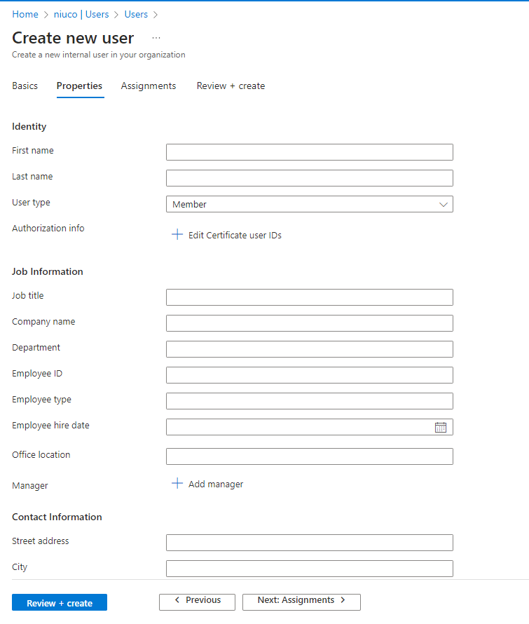 C1. Acesse a lista de usuários do Acesse o painel de controle do Microsoft Entra ID e selecione a opção Novo Usuário > Criar novo usuário