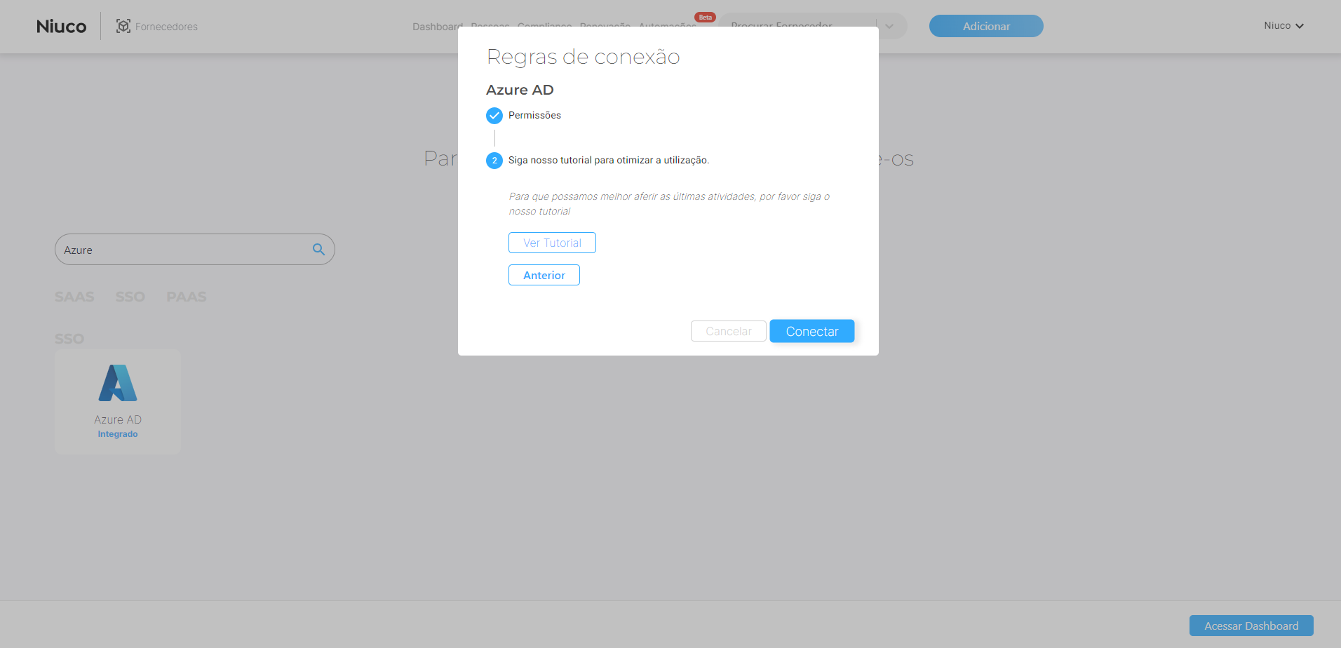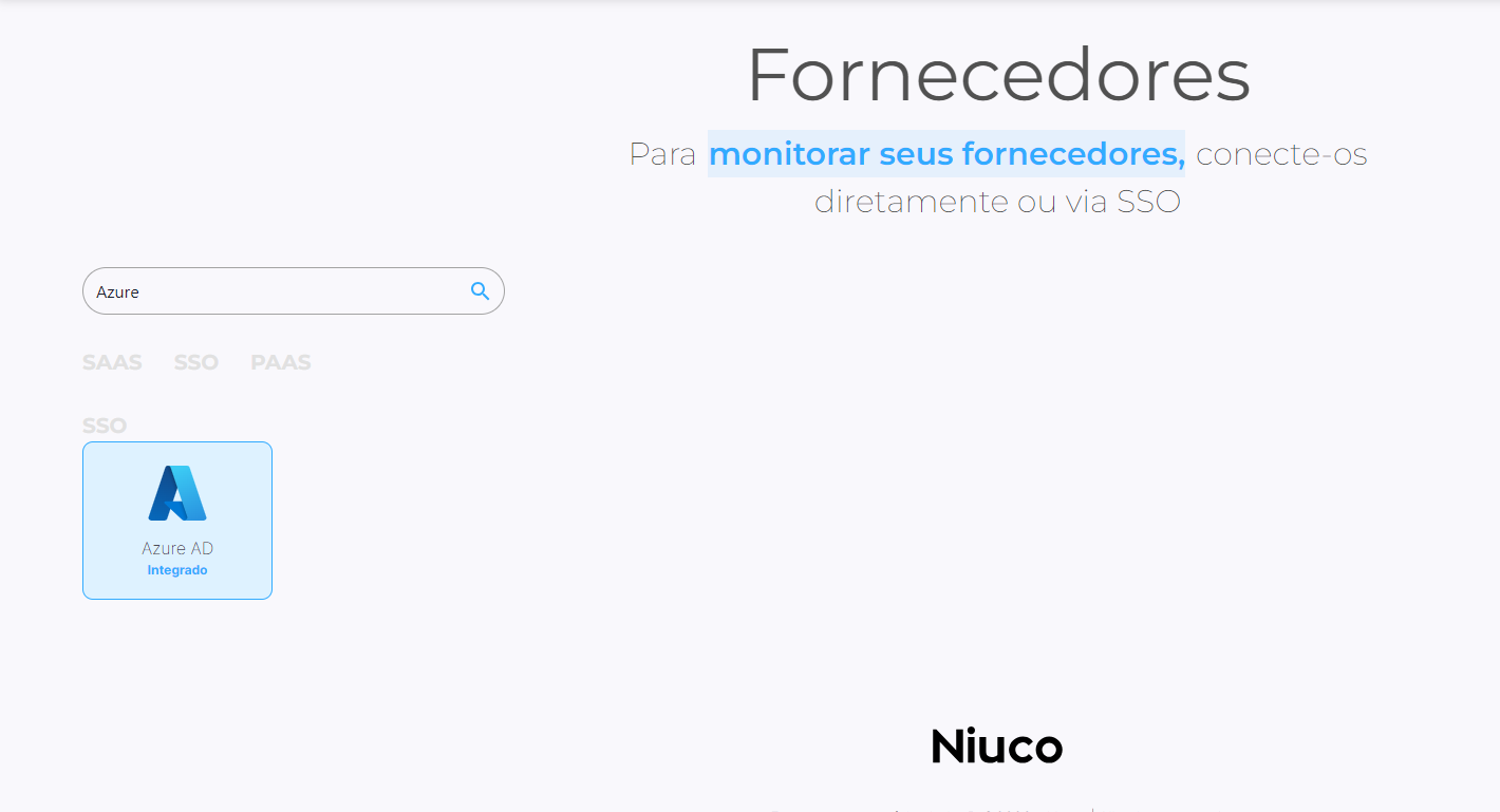 D1. Acesse sua conta no Niuco, navegue até a tela de conexão de Software e compre pelo Azure AD.
