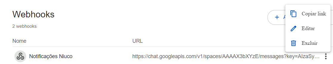 Obtendo a URL do Webhook do Google Chat: