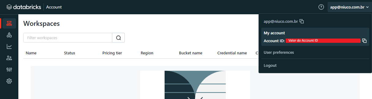 Selecione a correspondente à sua conta Databricks.