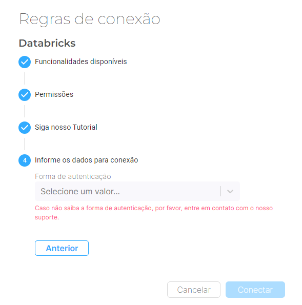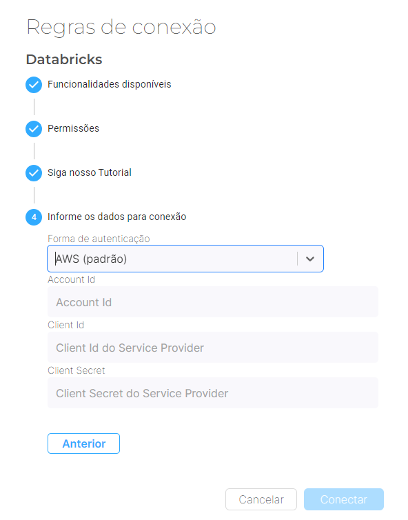 Pronto, sua conexão com o Databricks já está estabelecida na nossa ferramenta!