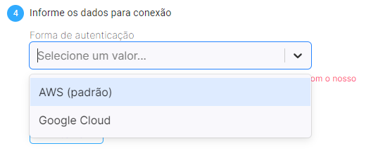 Logo após, aparecerá 3 campos abaixo desta lista suspensa: Account ID e Client Id e Client Secret.