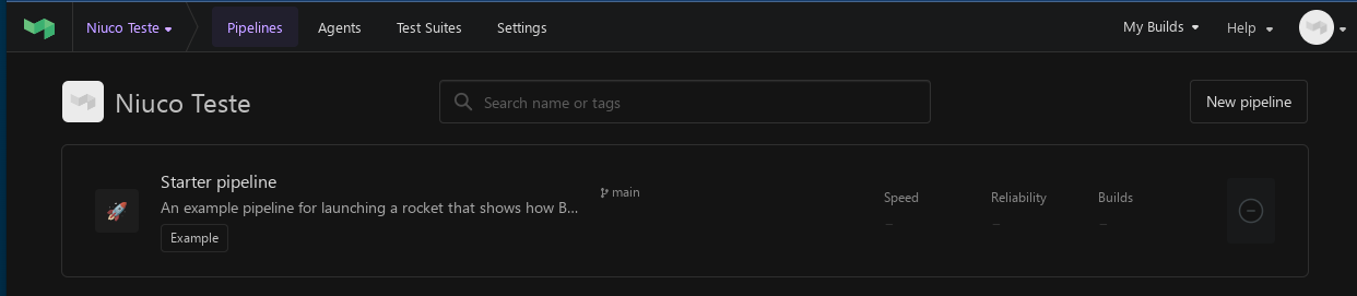 Após efetuar o login no Buildkite, você verá uma tela parecida com esta abaixo: