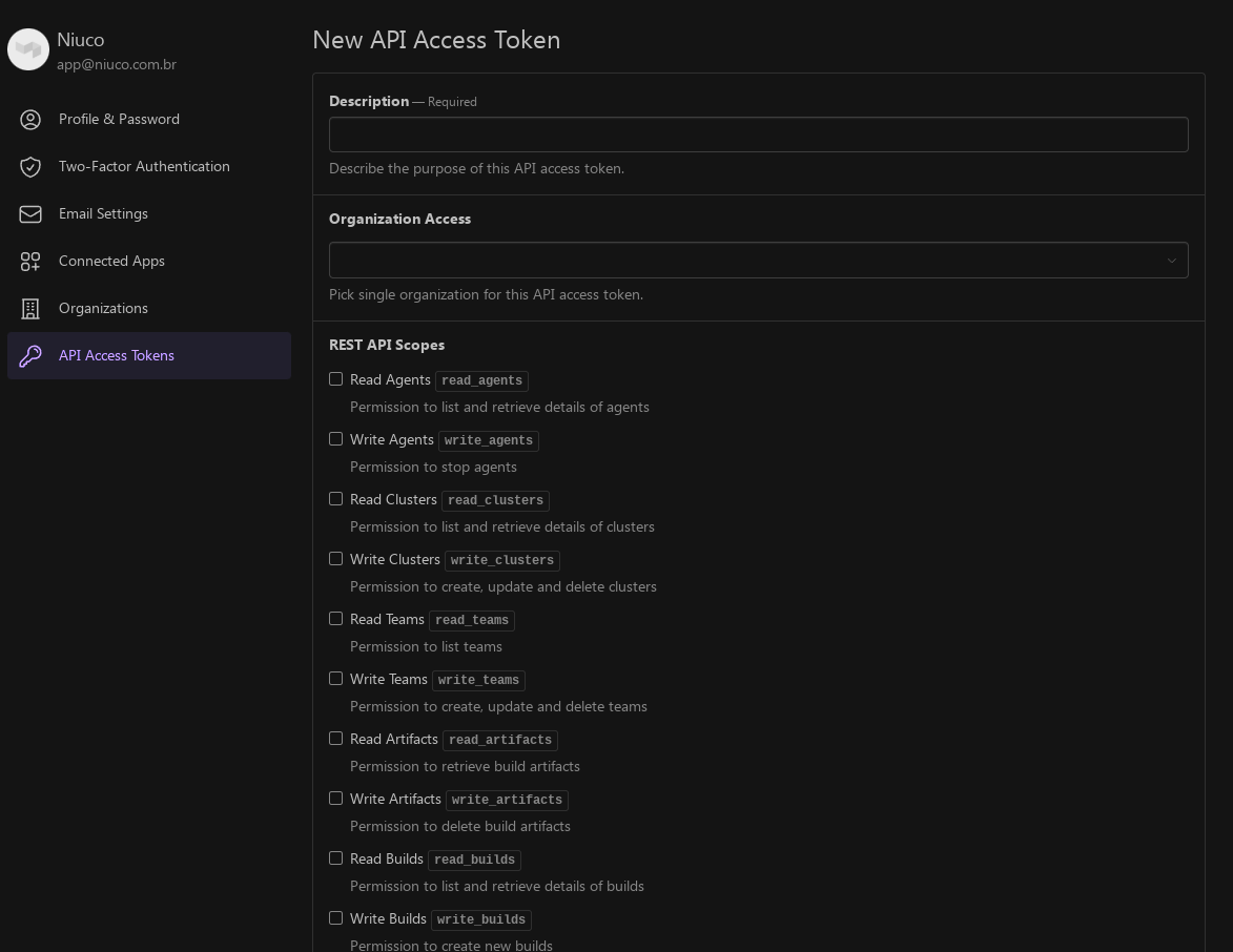 - Description: O nome do API Access Token dentro do Buildkite