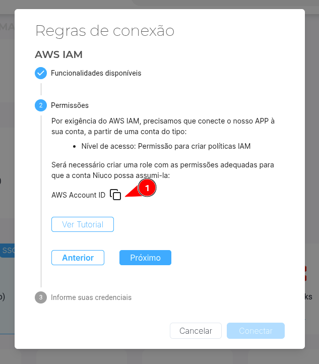 Pronto, basta agora você acessar nossa ferramenta e ao cadastrar a AWS, compartilhar o Role Arn, External ID e Alias para nos dar autorização :D.