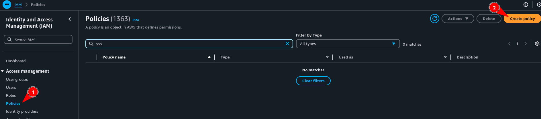 1. Acesse a página de IAM Policies e clique em Create Policy