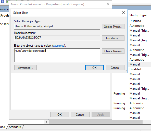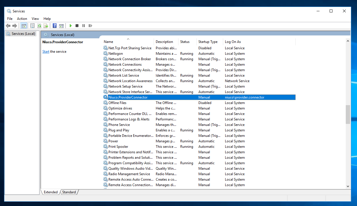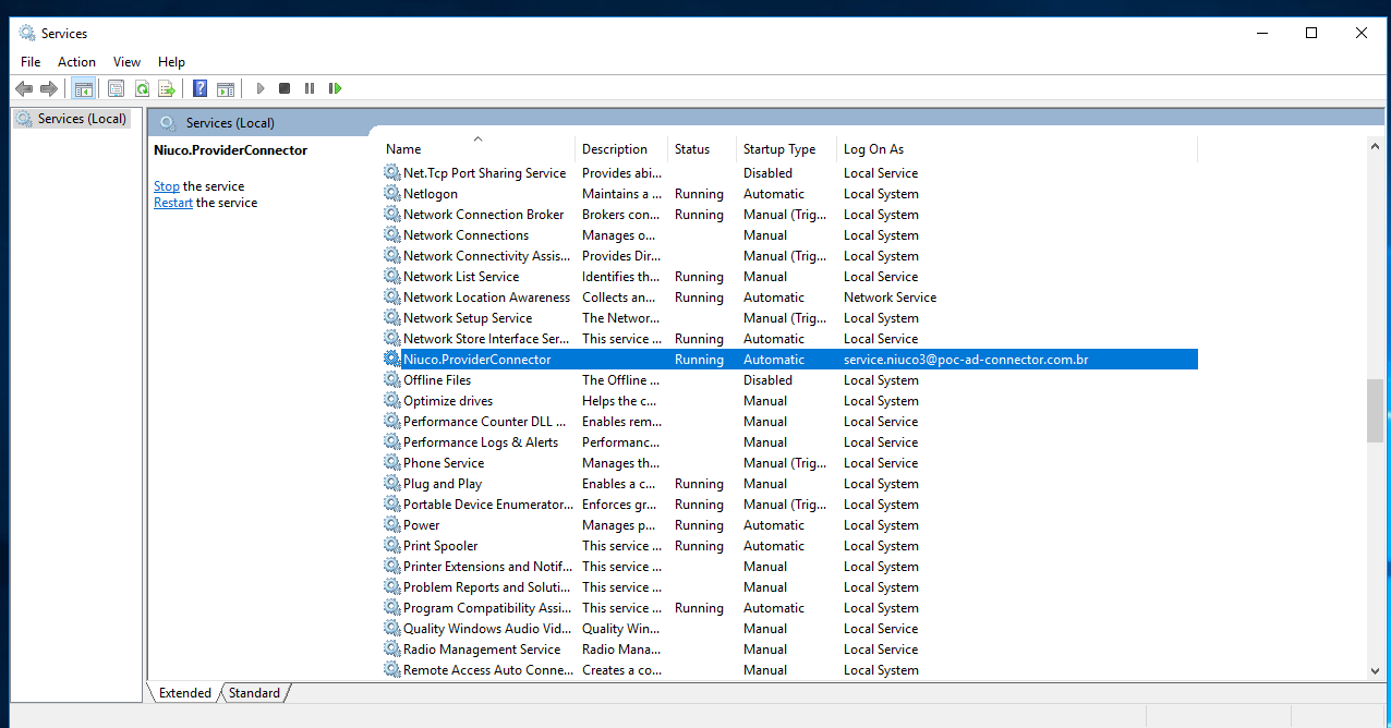 - Agora abra o console de configurações de serviços do Windows e procure pelo conector da Niuco