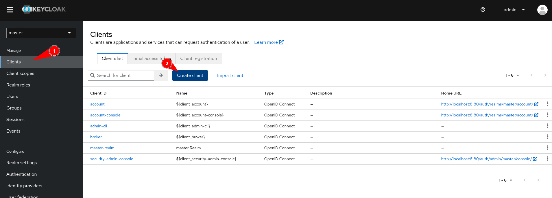 1 - Clique em "Clients" no menu a esquerdar e depois clique em "Create Client"