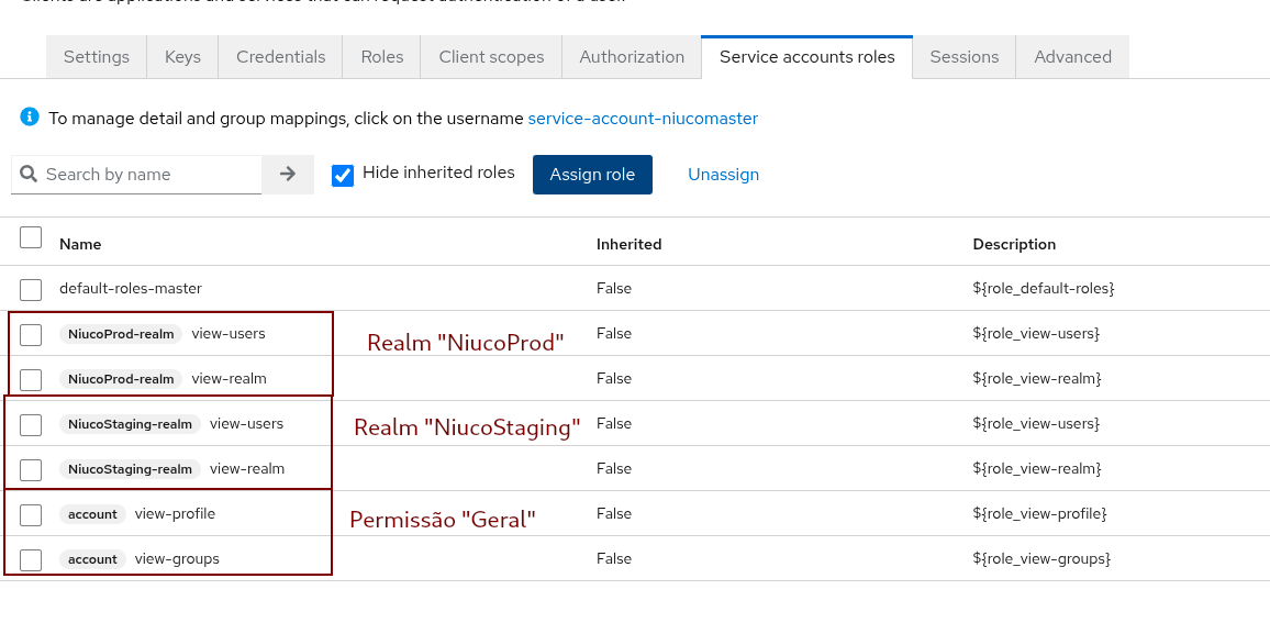 PS: Para cada realm que deseja que a Niuco monitore, é necessário liberar a permissão "view-users" e "view-realm"