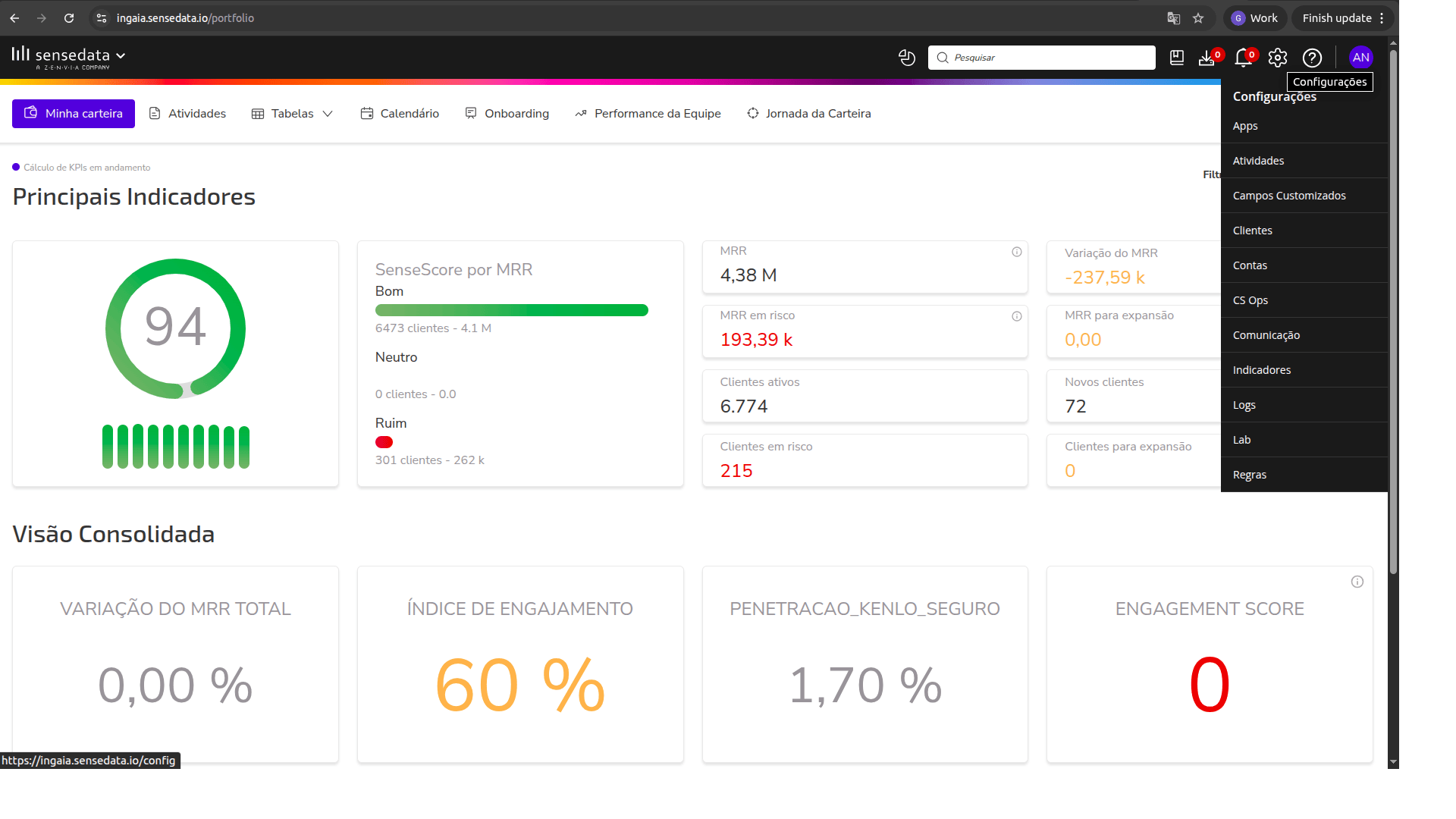 2. Com acesso de administrador, acesse o menu de configuações no canto superior direito